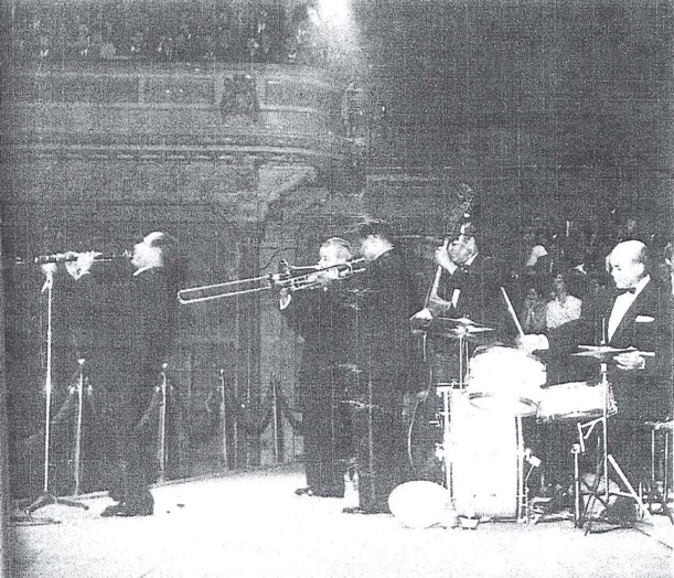 Minor Hall dm, Phil Gomez cl, Alvin Alcorn tp.