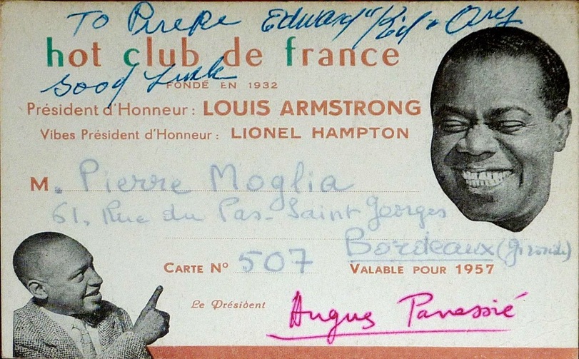 The card was valid for year 1957 and the holder was affiliated to the Bordeaux local, so it must have been signed at the October 29th, 1956, concert at the Alhambra in Bordeaux.