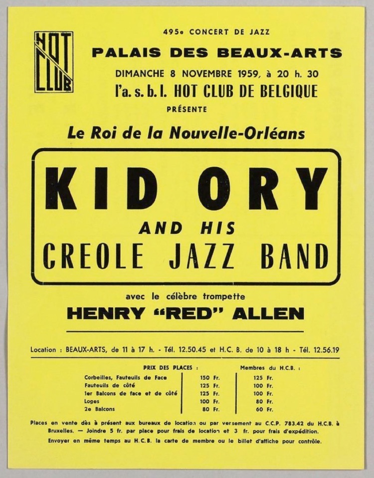 Brussels : An enthusiastic crowd of over 3000 jazz lovers gave the 73 years old Kid an ovation last sunday. (Utrechtsch Nieuwsblad).