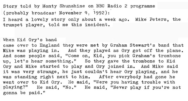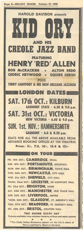 Unknown tb, Probably Phil Rhodes (Terry Lightfoot´s trombone player) tb, Kid Ory, Mac Duncan tb, Alan Eldson tp, Terry Lightfoot cl.