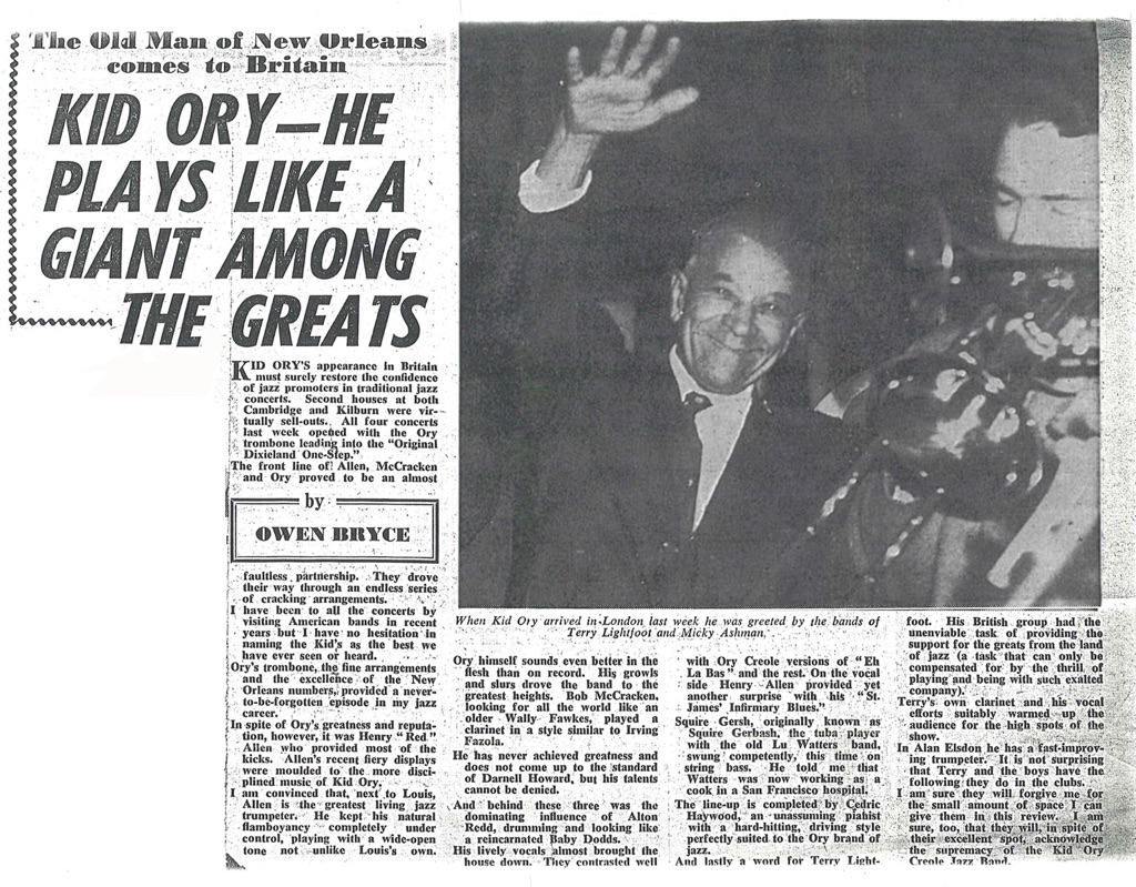 Kid Ory in UK 1959. Kid Ory, Mac Duncan tb.