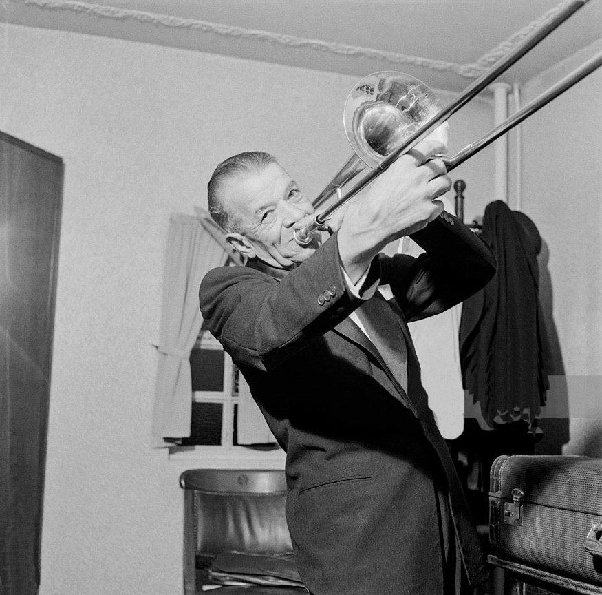 Kid Ory gets prepared for the 1959 tour in Europe.