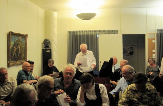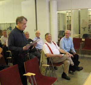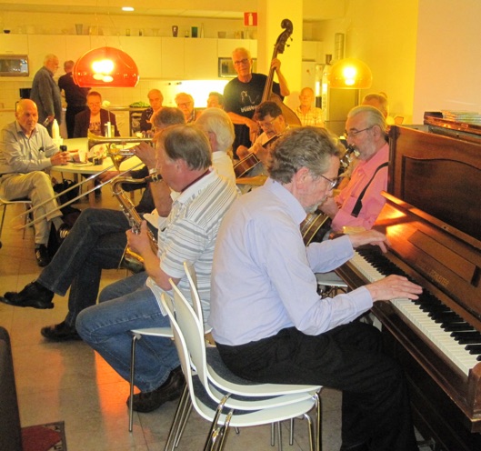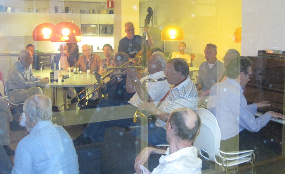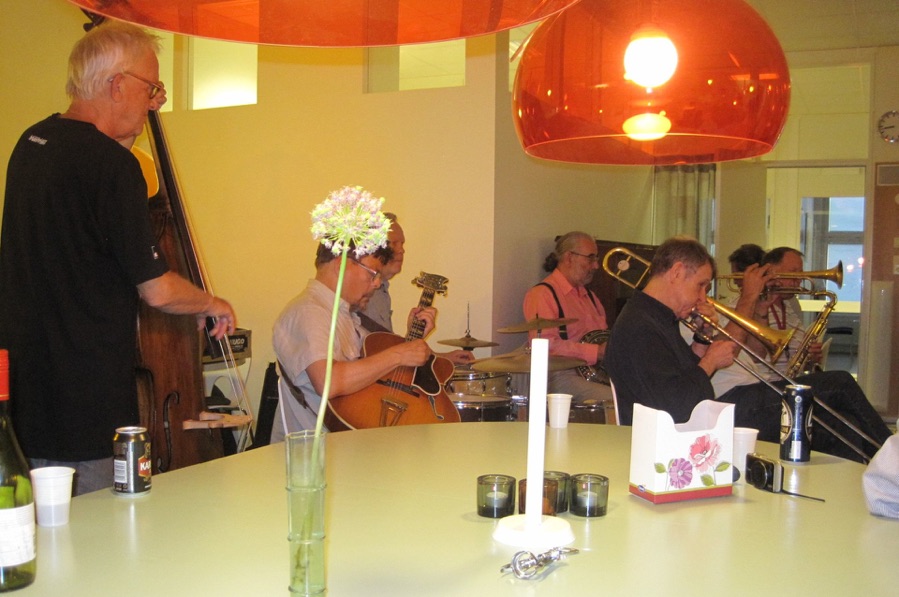 As the tradition also orders we rounded off the meeting with live music. In the band we had Christer Fellers trumpet, Mike Pointon trombone, Kenneth Arnström reeds, Arne Högsander clarinet, Ray Smith piano, Louis Lince banjo, Håkan Rosenqvist guitar, Karl Kronqvist double bass and Per Oldaeus drums. Their great concert was stylishly concluded with Ken´s charming tune ”Goin´ Home”, recorded with Ken´s first Jazzmen in 1954 and many times after that. And then we happily strolled home in the warm night. See you all again in 2015.