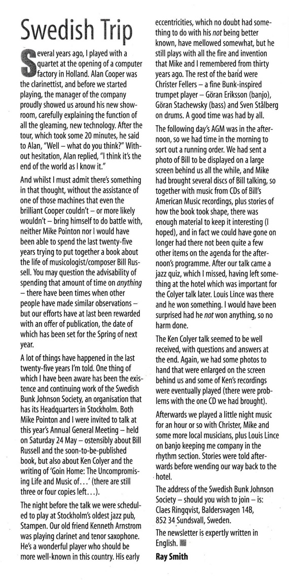 Ray Smith writes in ”Just Jazz”.