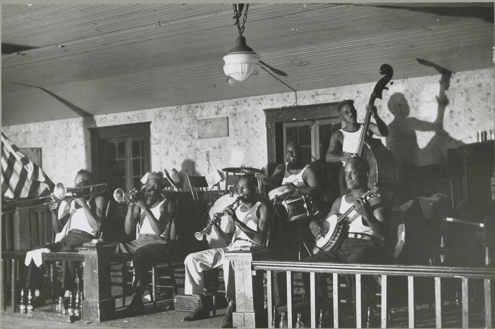 The building was owned by Beansie Fauria, one of New Orleans all-time great characters. Fauria was the Numbers King of the South and had extensive real estate holdings, mostly bars and dance halls, as well as ownership of most of the slot machines in New Orleans. He was of mixed race and very light, like his relative, Afro-Italian trumpeter Ernie Cagnolatti. As Preston Jackson said, "The police would pick him up for questioning and they`d ask him if he was colored or white. He wouldn`t answer. He`d say, "I`m Beansie."