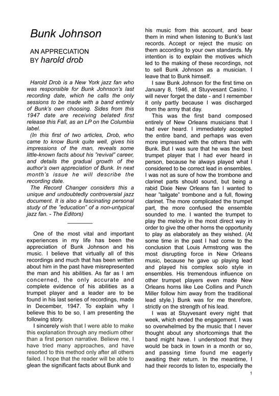 Below we reproduce an article by Harold Drob, originally published in Record Changer vol. 11 no. 10.
