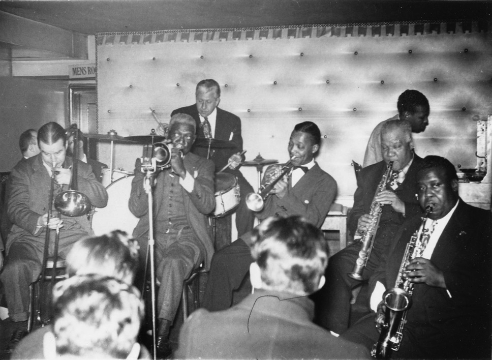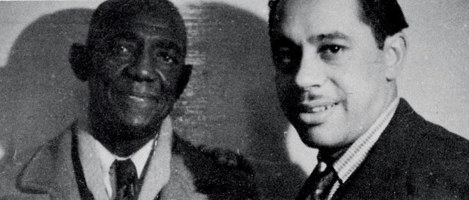 Bunk shaking hands with George Baquet before the concert in Philadelphia 1945.