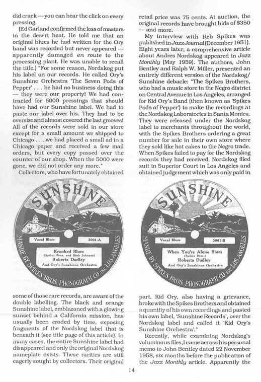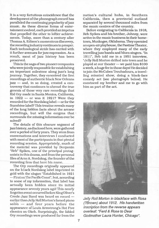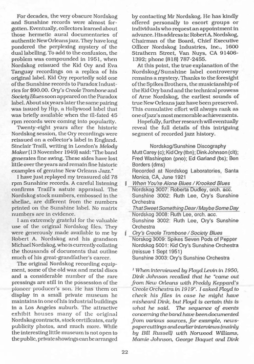 1922 NORDSKOG / SUNSHINE RECORDINGS