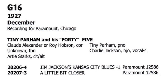 Ory says he recorded with Tiny Parham in Chicago (1927).