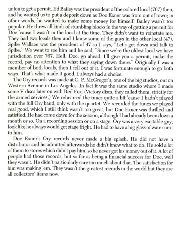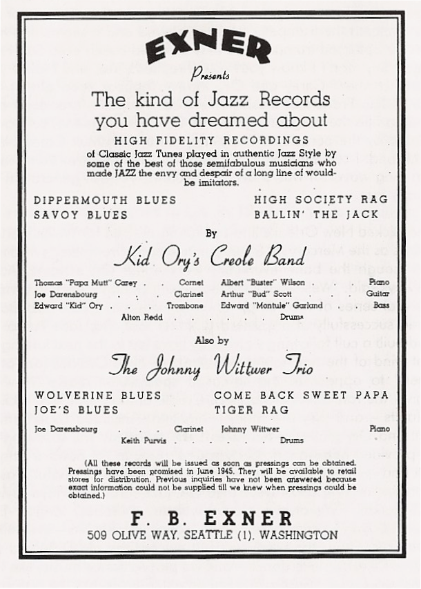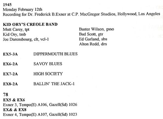 Kid Ory tb, Alton Redd dm, Ed Garland b, Mutt Carey tp, Buster Wilson p, Joe Darensbourg cl, Bud Scott g.