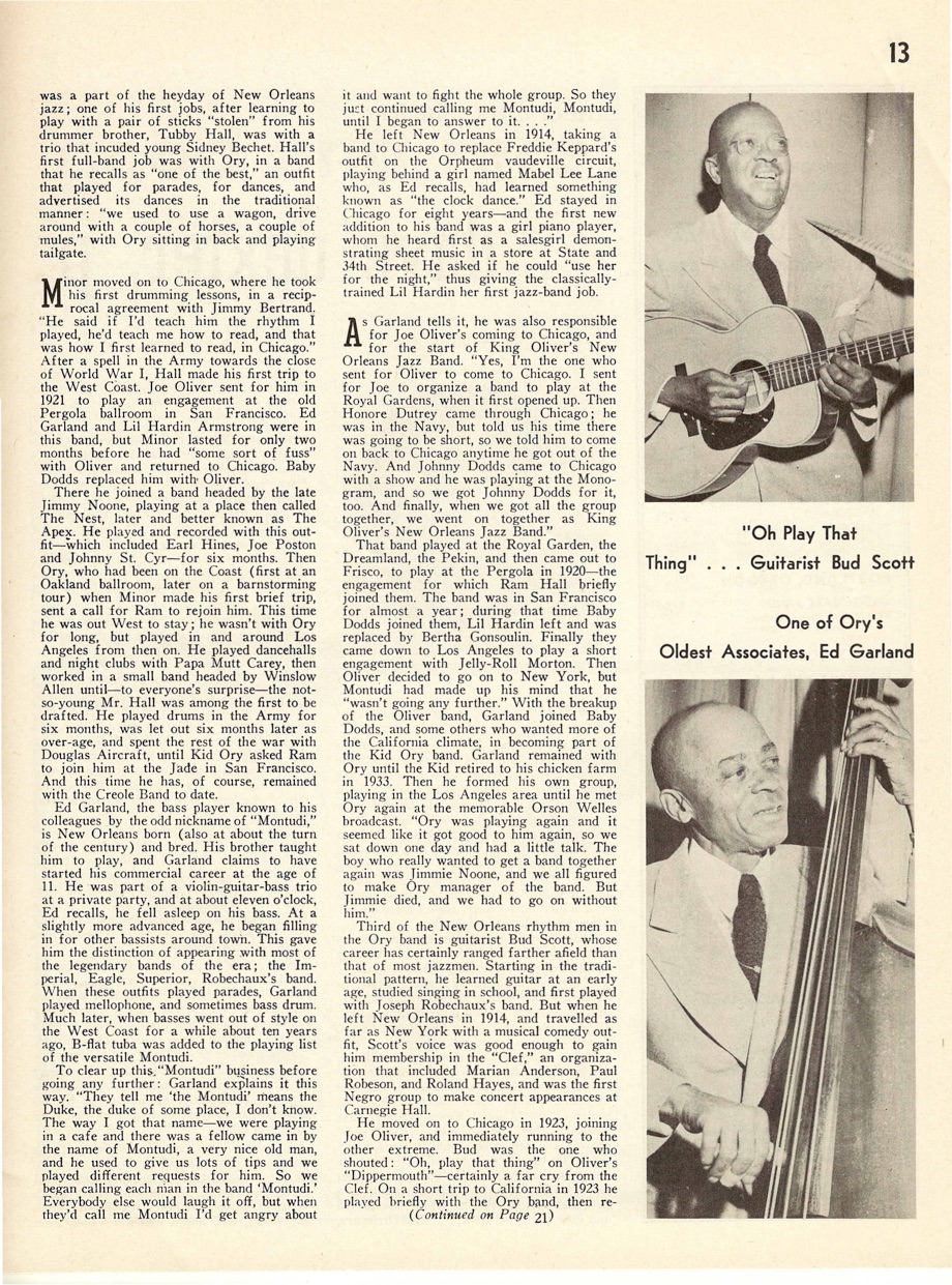 Kid Ory´s classic rhythm section. Ed Garland b, Buster Wilson p, Minor Hall dm, Bud Scott g.