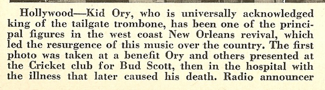Kid Ory´s Creole Jazz Band at The Cricket Club 1949.