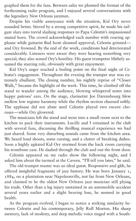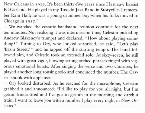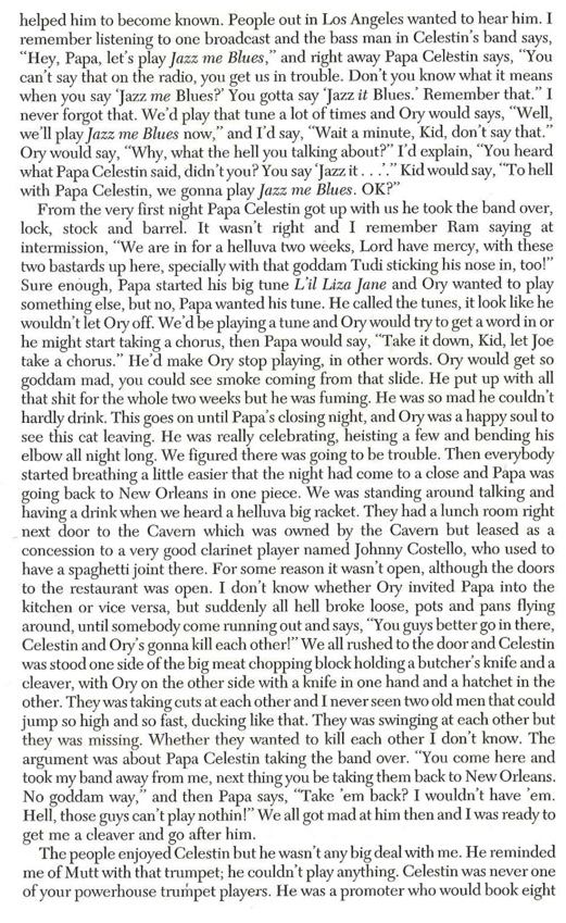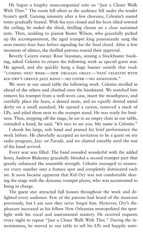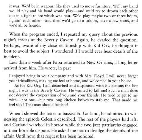 Floyd Levin in ”Classic Jazz” describes the encounter between Papa Celestin and Kid Ory 1951