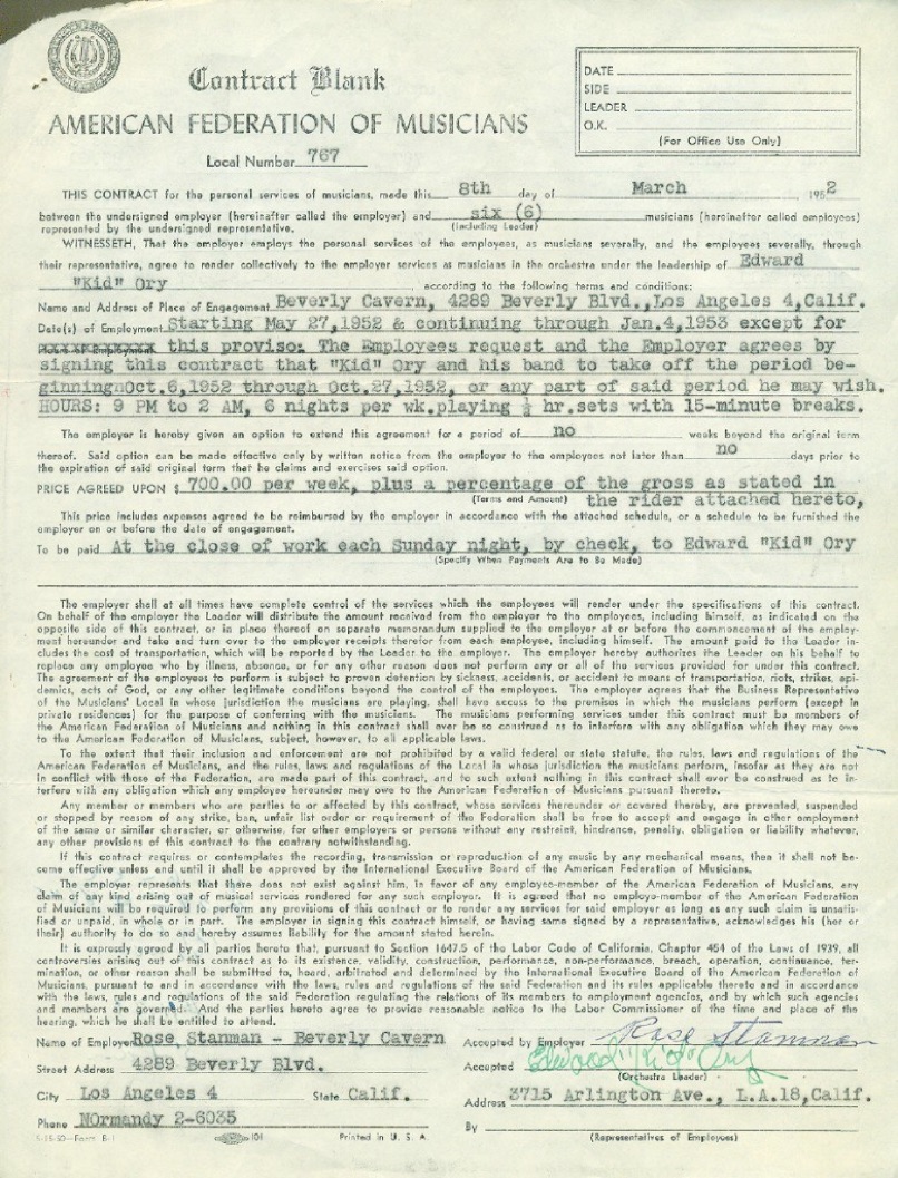1952 BEVERLY CAVERN CONTRACT AND PHOTOS