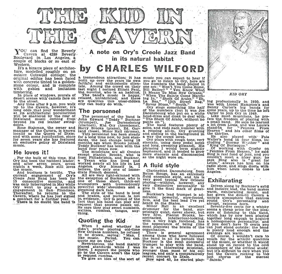 Teddy Buckner tp, Ed Garland b, Harvey Brooks p, Joe Darensbourg cl, Minor Hall dm, Kid Ory tb.