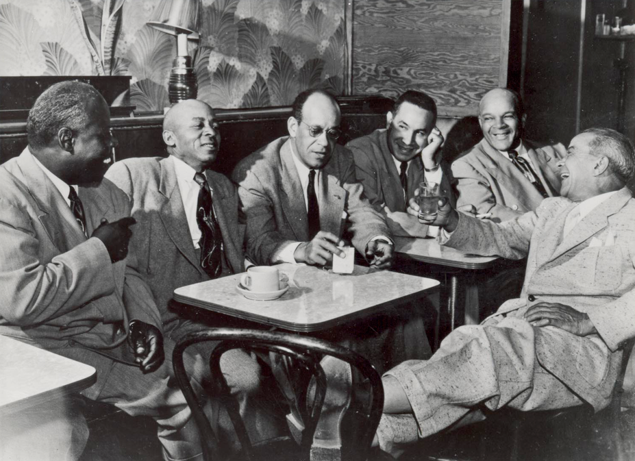 Kid Ory´s band backstage at at Beverly Cavern in 1953.