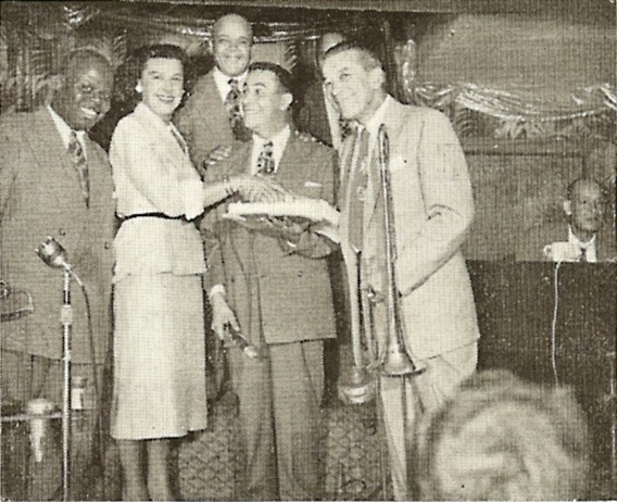 Teddy Buckner, Rose Stonman (owner and manager of the Beverly Cavern), Ram Hall, Joe Darensbourg, Kid Ory.