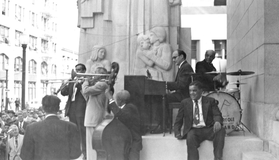 Another piece of trivia for our timeline, from listening to the 2CD set "live at the Club Hangover" . At the start of track C60 in the Kid Ory disciography ”I´ve found a new baby” , announcer Bob Guerner informs about a concert last wednesday, that is on 20 October 1954, on the very stairs of the San Francisco Stock Exchange, in support of the United Crusade.
