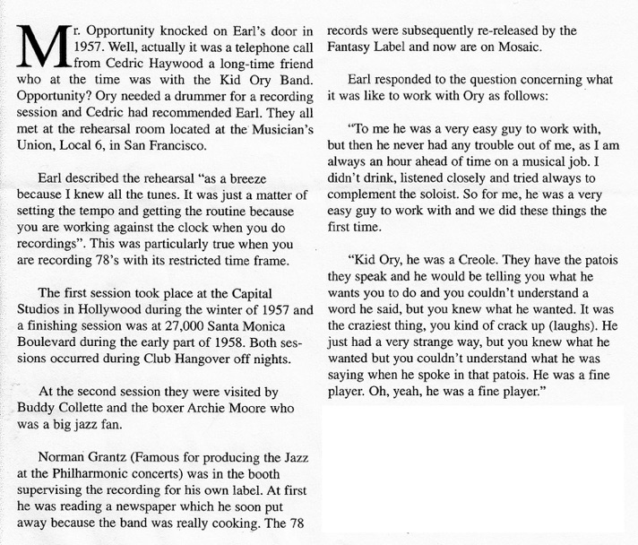 Jim Goggin describes and Earl Watkins recalls the studio session with Kid Ory in chapter 6 of: