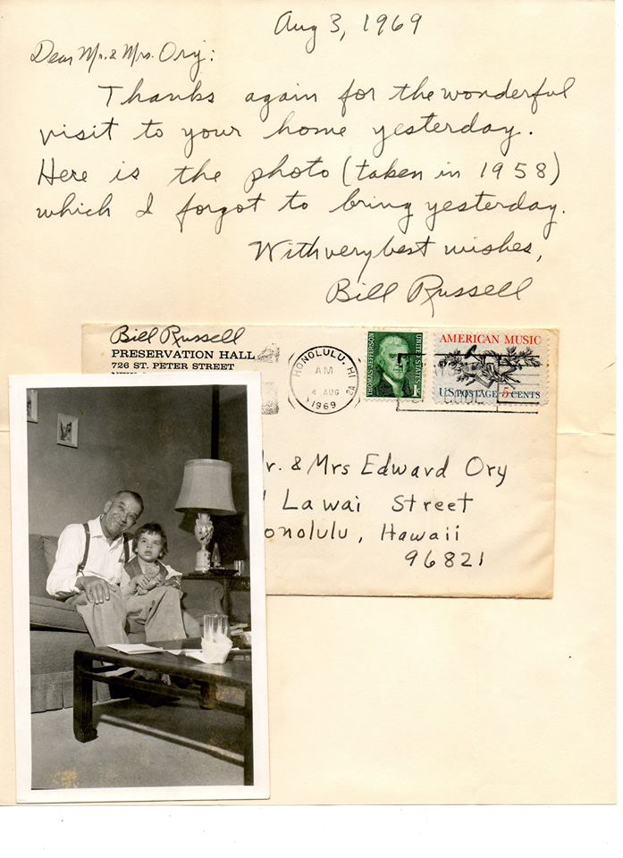 Letter from Bill Russell to Mr and Mrs Ory 1969.