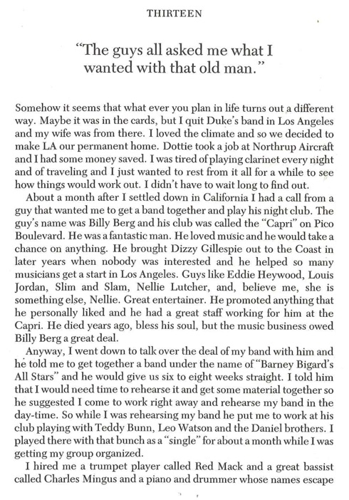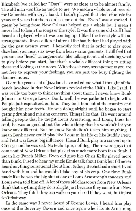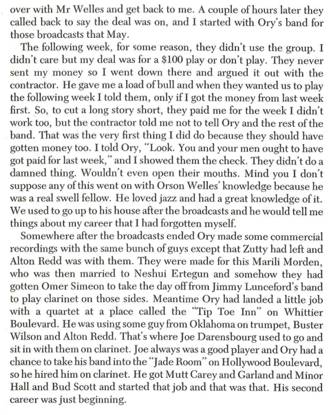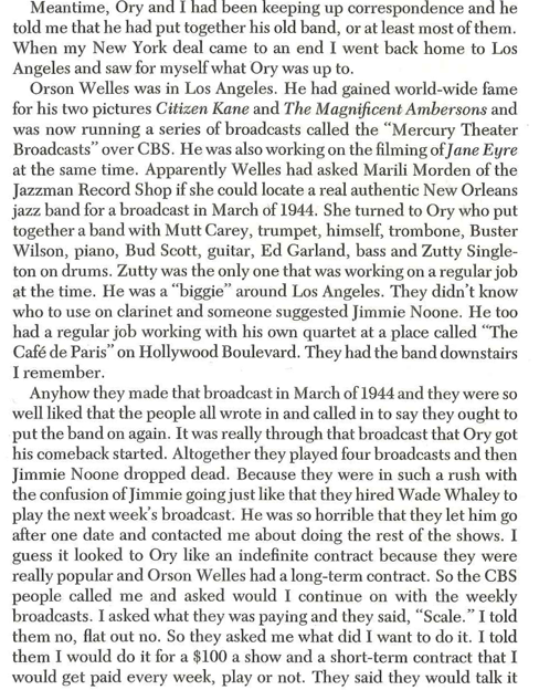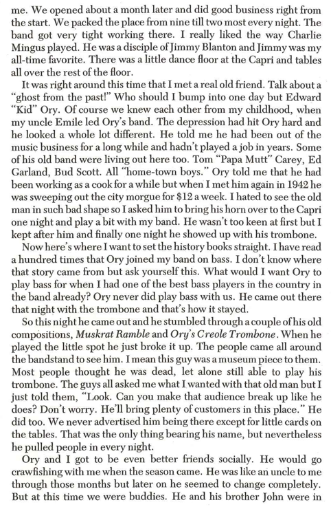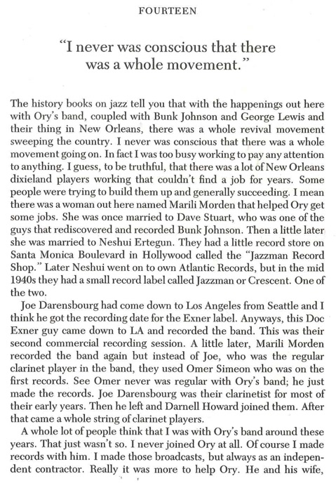 Barney Bigard describes his role in the revival. Parts of chapter 13 and 14 dealing with Ory are shown here.