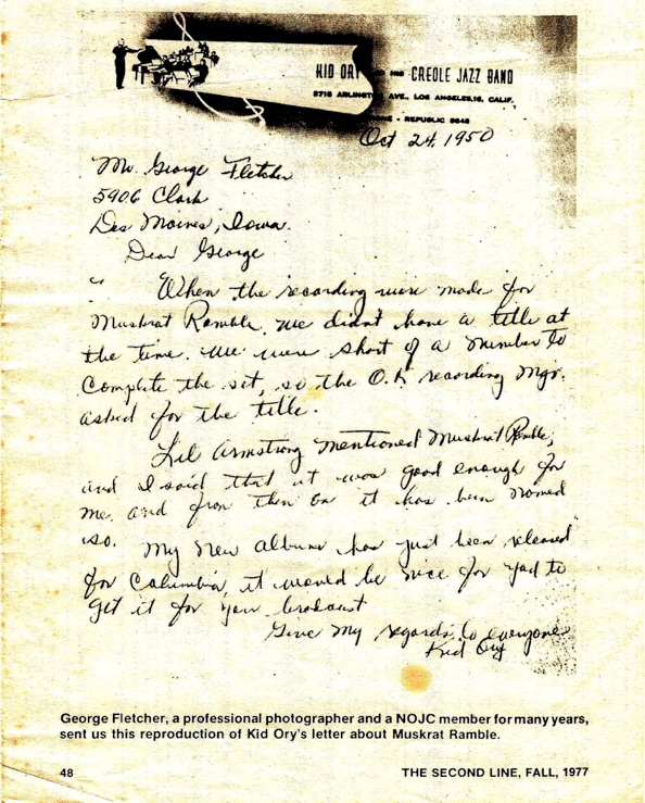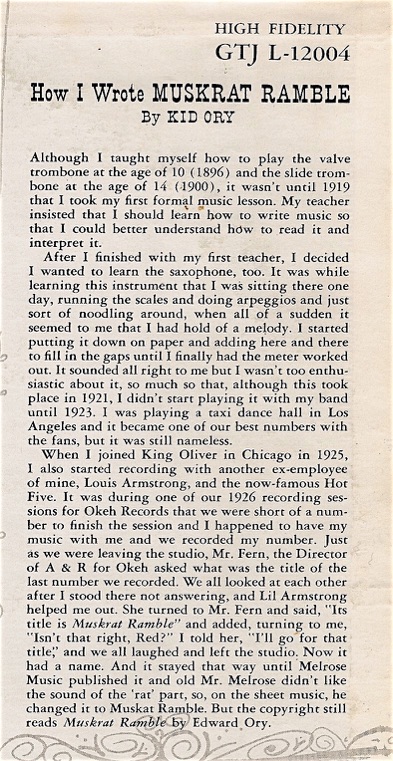 How I wrote Muskrat Ramble by Kid Ory. See: Good Time Jazz GTJ L-12004