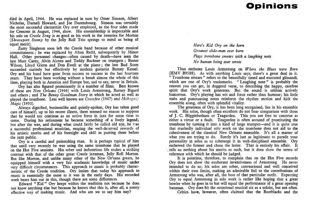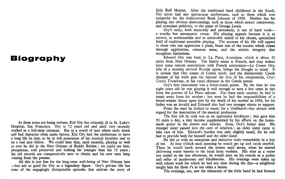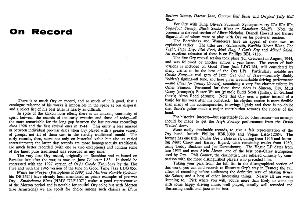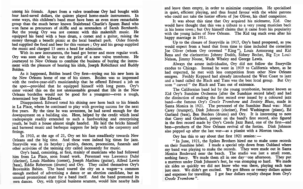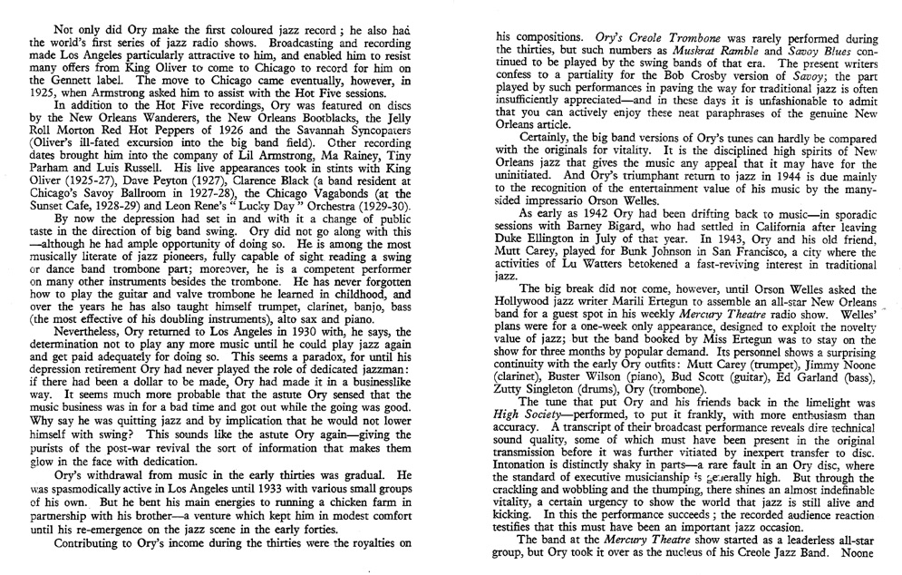 KID ORY - A BIOGRAPHY, APPRECIATION, RECORD SURVEY & DISCOGRAPHY