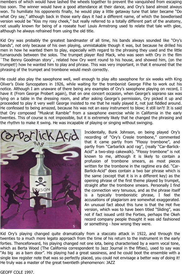 THOUGHTS ON SOME OF KID ORY´S MAJOR COMPOSITIONS