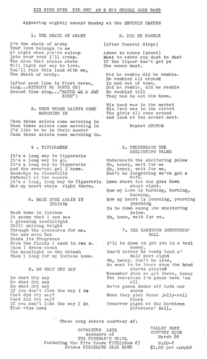 SINGING WITH KID ORY AND HIS CREOLE JAZZ BAND