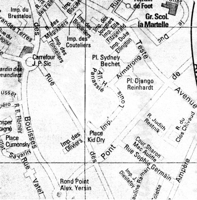 In the leafy suburbs of the French City of MONTPELLIER at the end of IMPASSEE LOUIS ARMSTRONG there is a short cul-de-sac named PLACE KID ORY.
