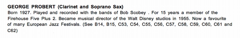 Short questions to George Probert ( cl and ss) in September 2011 on Kid Ory Society on Facebook.