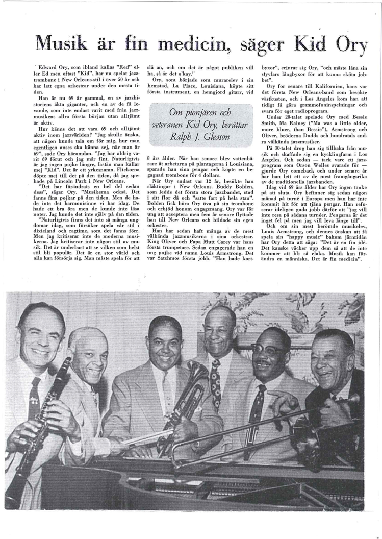 Ralph J Gleason tells, in Swedish, about his meetings with Ory.