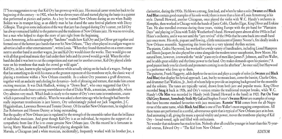 me my first jazz record "Kid Ory - Favorites" back in 1969. I still have the
