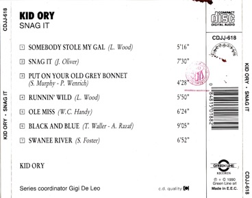 The next Kid Ory records I bought were two CDs and it was early nineties. It took me more than 20 years, but when I found them in the bargain bin of my local supermarket, I could not resist. I bought these italian reissues, not knowing the original issues had been on Verve and were titled respectively The Kid From New Orleans and Dance With Kid Ory Or Just Listen. They were not bootlegs so to speak, as at the time Italian laws were different and I think copyrights did not last as long as they do now. You will certainly notice that no reference is made anywhere to the original producer or record company.