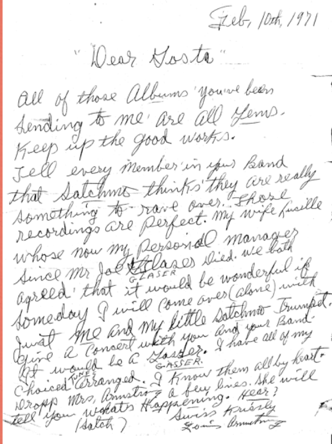 Louis skickade också ett tackbrev till Gösta Hägglöf och föreslog en konsert med bandet.