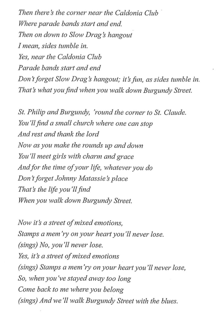 Burgundy Street blues - Lyrics